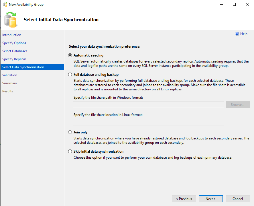 Use Automatic seeding as your data synchronization preference because experience has proved it to be the most stable, and it is recommended that all the SQL Server machines directory structure be the same.
