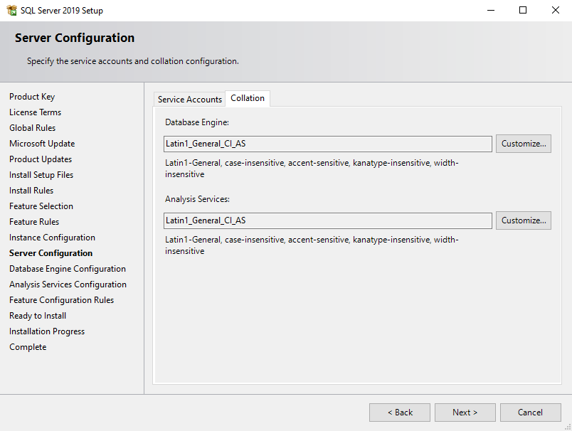 It is necessary to check that the collation is exactly Latin1_General_CI_AS. The deployment software will verify this setting and will fail if it differs.