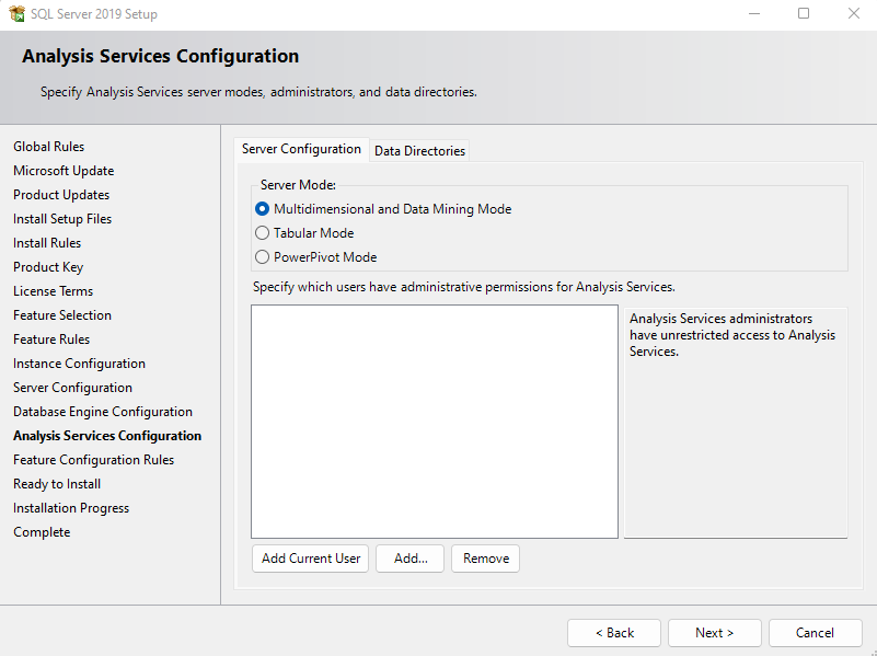 2 Only required if the Analysis Services and SQL Server are installed on different machines. In that case, please make sure to install Microsoft OLE DB Driver for SQL Server on the Analysis Services machine. More information on the installation of Microsoft OLE DB Driver for SQL Server here: https://learn.microsoft.com/en-us/sql/connect/oledb/download-oledb-driver-for-sql-server?view=sql-server-ver16 ⧉.