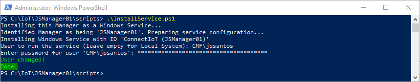 The final step is to install the automation as a Windows Service. For this feature, execute the PowerShell script that is located in scripts\InstallService.ps1 as an administrator (requirement to create Windows Services), and answer the questions.