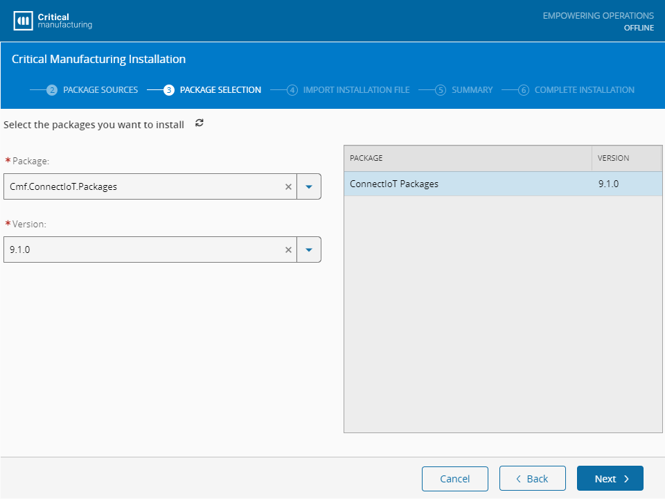 Run the setup wizard and select the package Cmf.ConnectIoT.Packages from the dropdown and select Next.