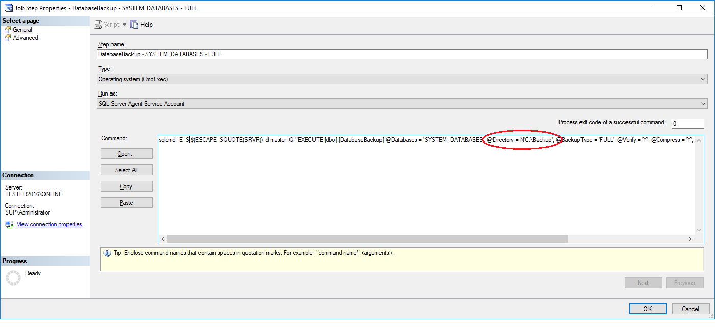 DatabaseBackup - SYSTEM_DATABASES - FULL This job is responsible for the full backup of all the system databases (master, model and msdb). Runs weekly on Sunday at 04h00.