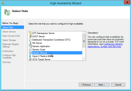 a. In Select Role select Generic Service and then click on next.