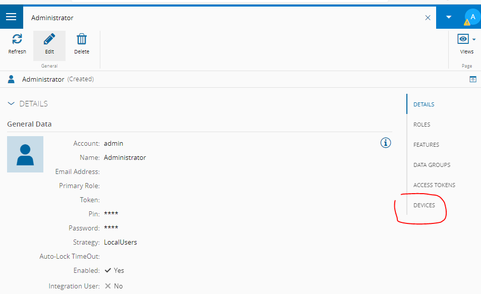Navigating to the User page, scroll down to the Device section: