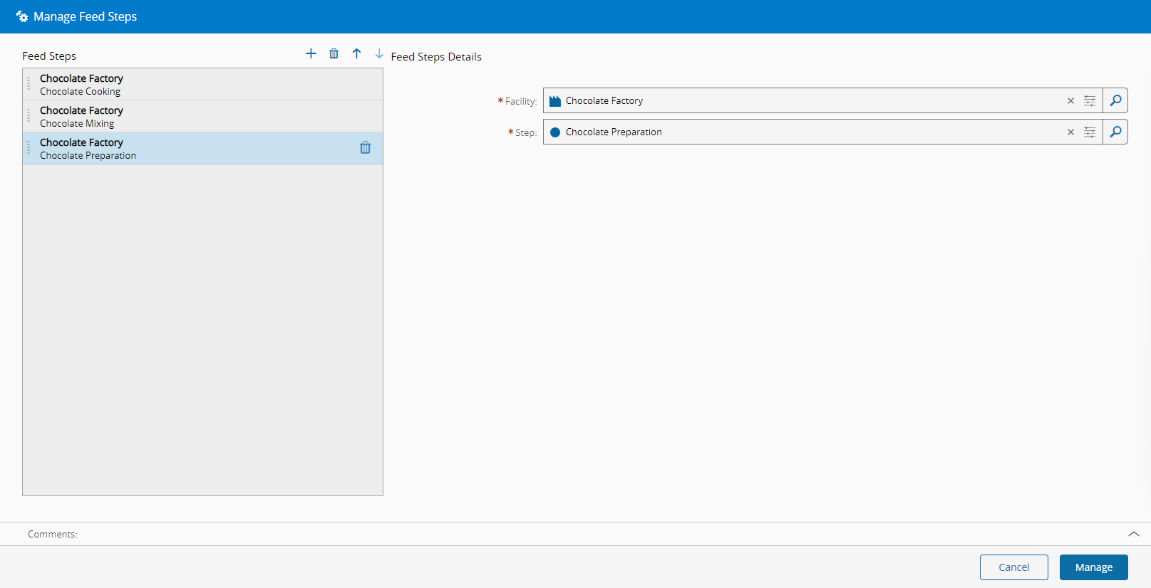 Should there be a cycle time associated with the Feed Steps, these can be specified in the smart table Step Product Yield and Cycle Time Context, similarly to Passthrough Steps