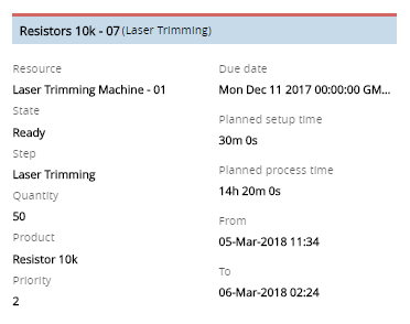 By clicking on a Schedule Scenario Job on the Resource, Durable or Employee Calendar View, the other Jobs related to the same Material will be highlighted, showing the other Steps the Material has to undergo. Additionally, in the Resource View precedence arrows will show what is the planned flow for that Material in the shop floor.