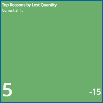 | Top Reasons by Lost Quantity | - Facility - Product Group | The Loss Reasons with the highest Lost Quantity for the selected Product Group. | - Current Day - Current Shift - Current Week - Current Month | Minimum | KPI Decimal | |