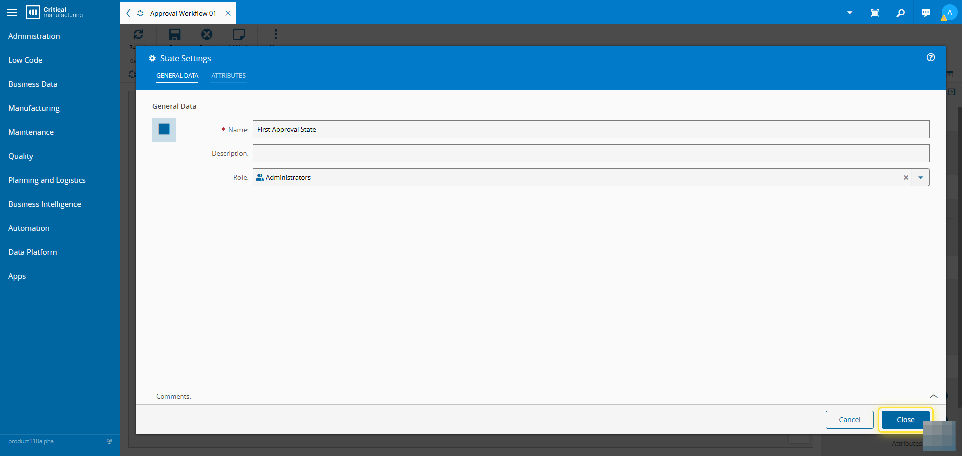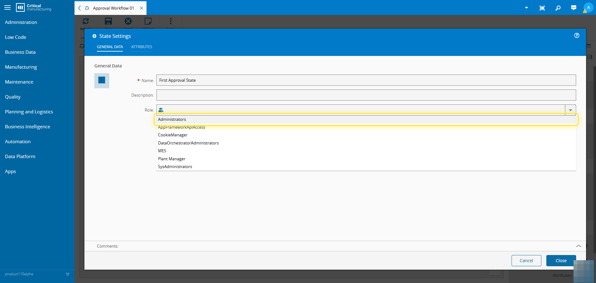 9. Set the name of the state and Role that needs to approve it.#