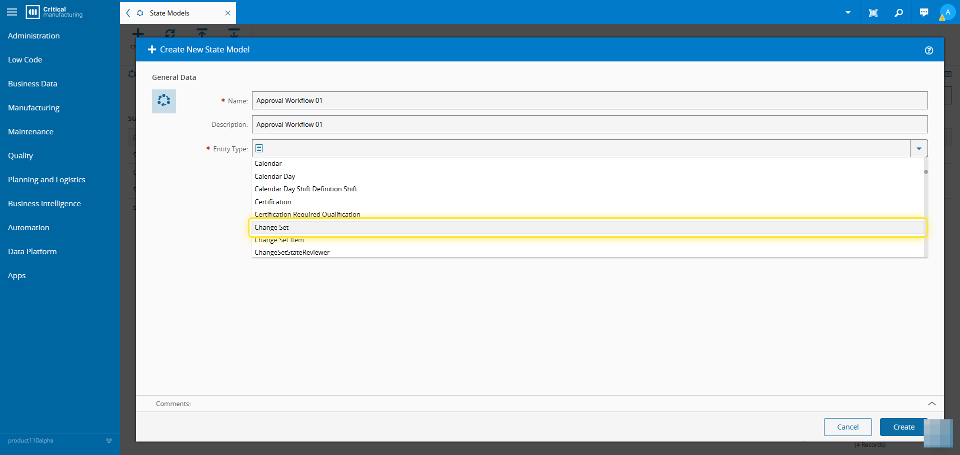 The entity type should be Change Set.