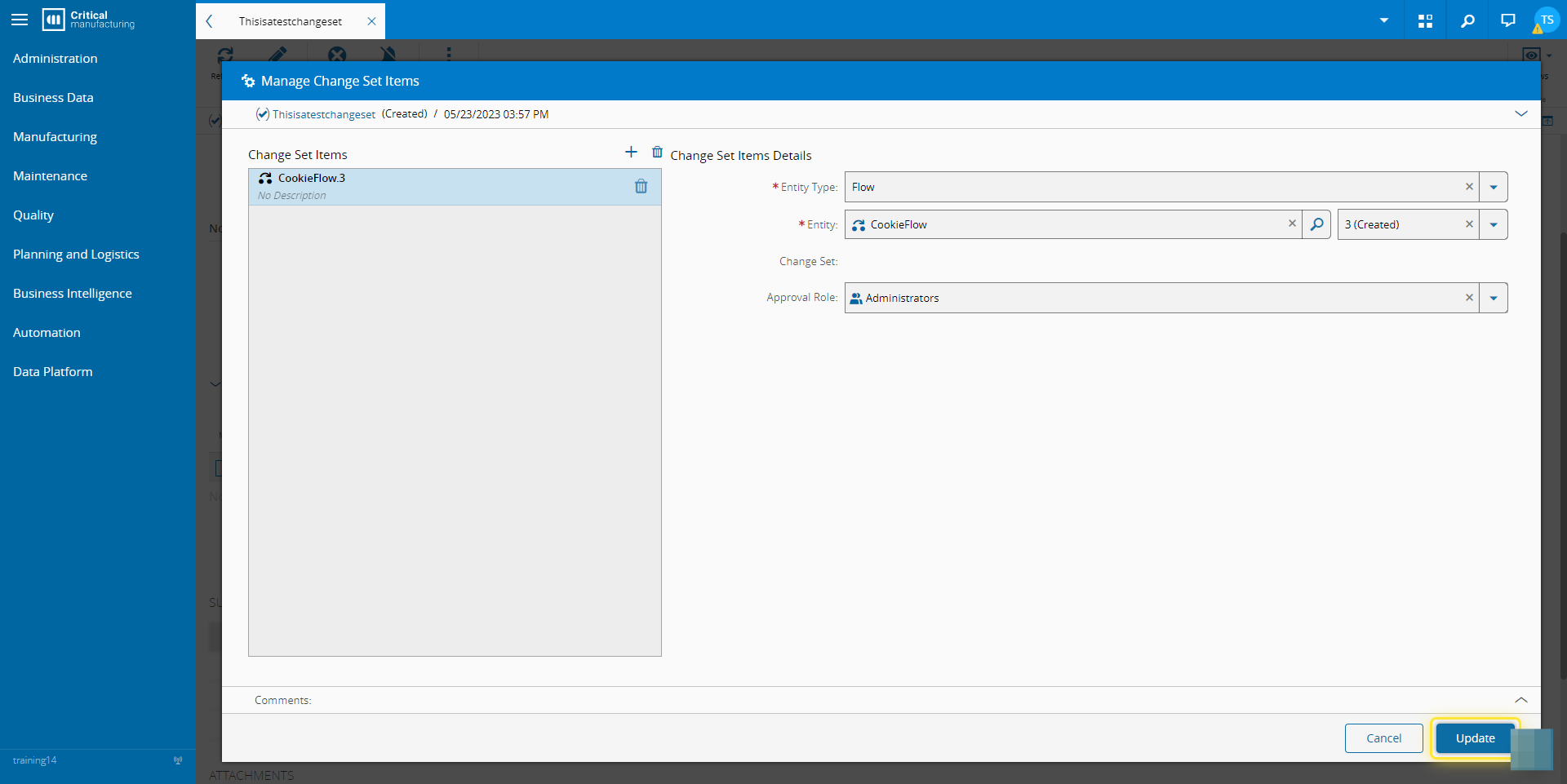 6. Under the Change Set Items Details tab, complete the necessary fields.#