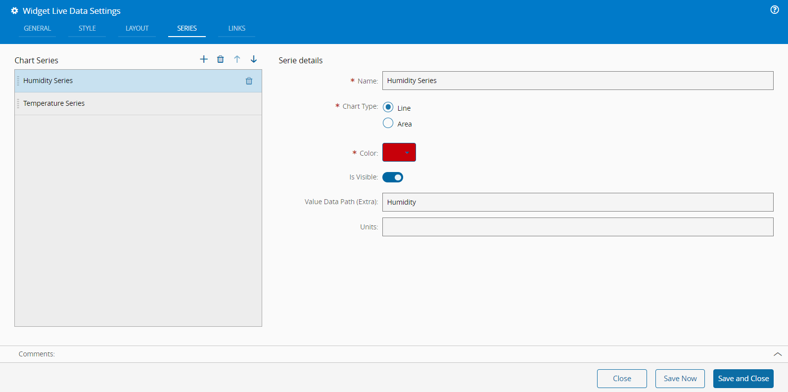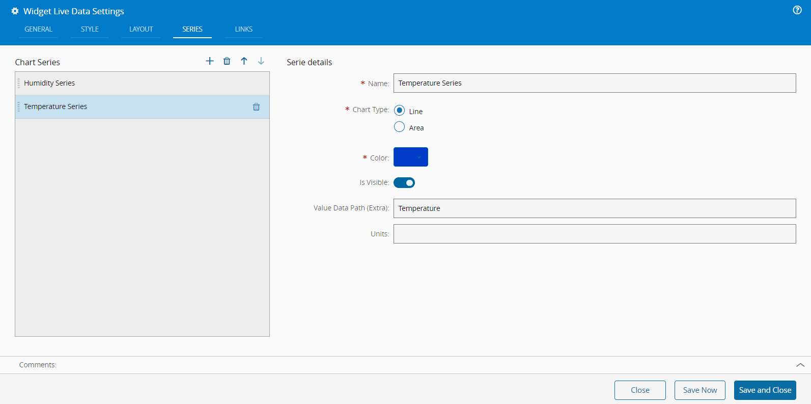 | Extra Data Path | A Data path can be specified here so that multiple series can be created for the same event. This will be appended to the Data Path of the Layout Settings | Temperature |