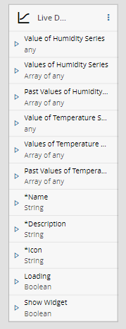 The next table displays the specific inputs of the Live Data Widget. These inputs will be available for each series: