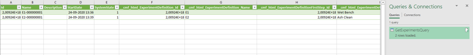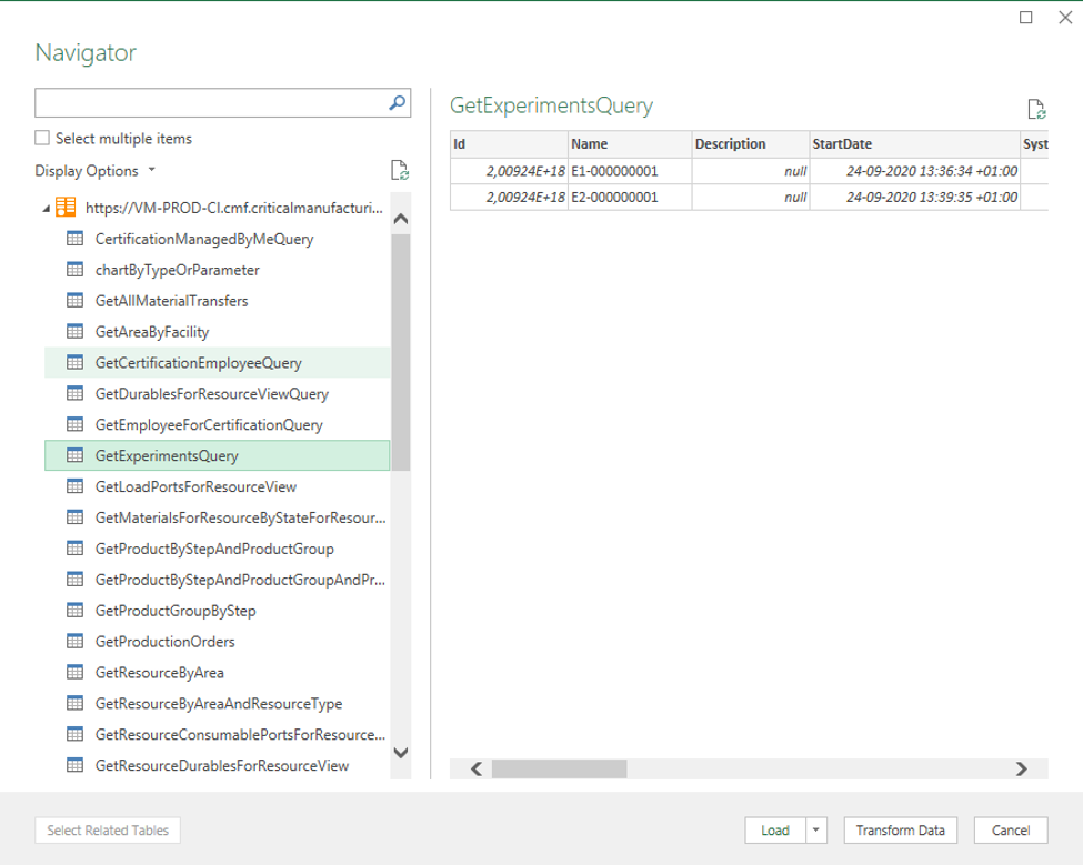 A sneak preview of the output data for each query is shown, allowing you to select the queries that should be imported. After selecting Load, the data will be imported: