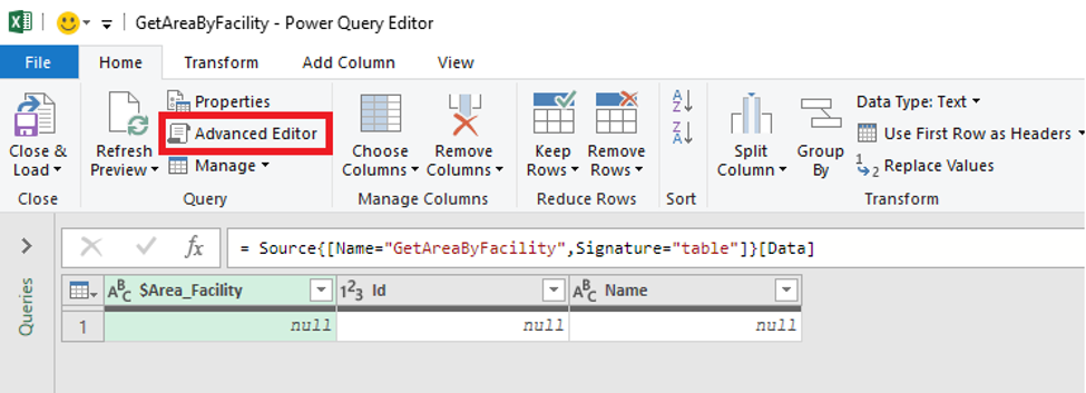 The Power Query editor should open, and you should select the Advanced Editor button: