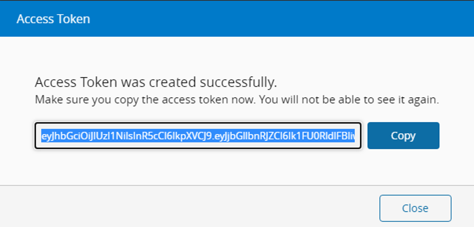 This token will only appear once, so you must store it in a safe location for future use.