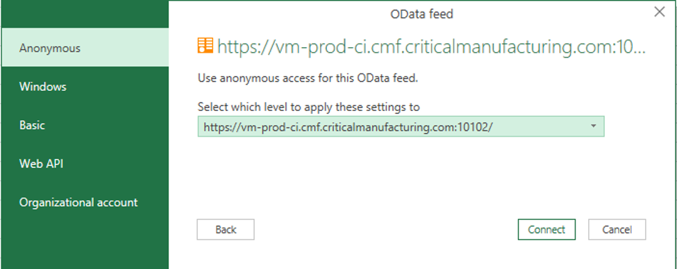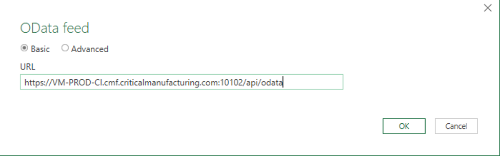 Paste the OData endpoint into the URL field and select OK. The application should redirect you to the OData feed window.