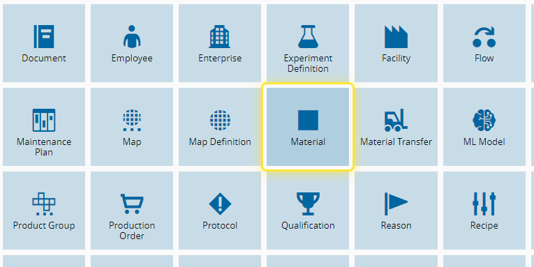 2. Select the Material entity.#