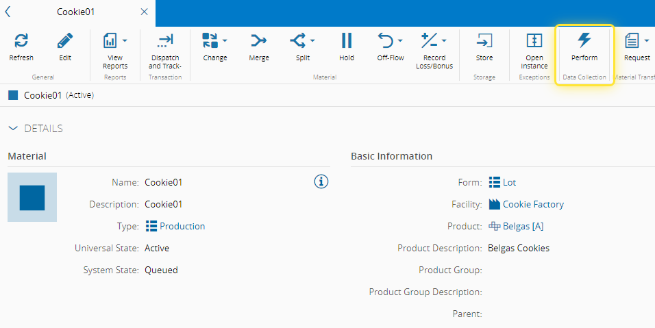 For more information, see Perform Immediate Data Collection - Critical Manufacturing Documentation Portal ⧉