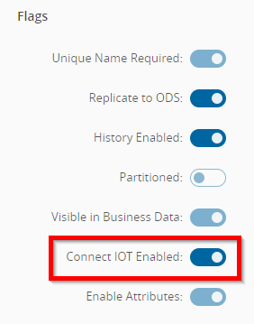 A specific configuration involves setting a property in any of the objects that will be accessed and handled by an Automation Controller (e.g. a Resource). For this, the Connect IoT enabled property in the Entity Type page for the specific entity must be active.