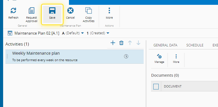To make the Maintenance Plan effective, select on the Request Approval button, on the top left-hand side of the page.