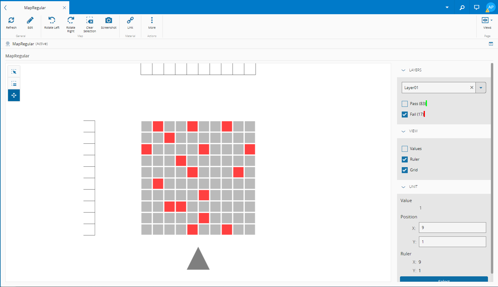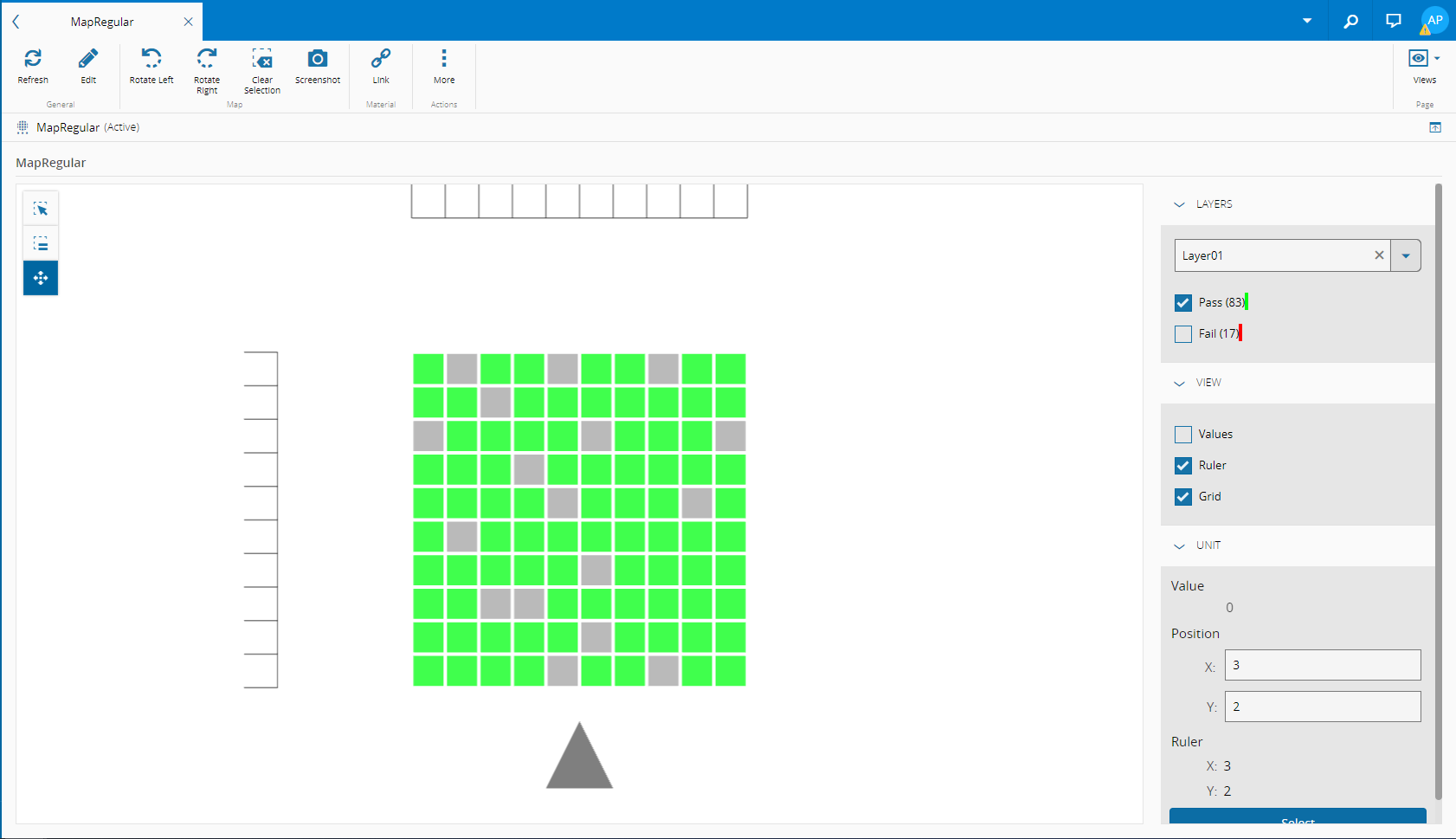 Critical Manufacturing MES keeps track of units inside a two-dimensional surface (this is required by some manufacturing industries such as semiconductor, PCB, and SMT). The surface can be divided into uniform regular rectangles in the form of a matrix, or in other cases the shape, position, and orientation of each unit within the two-dimensional space can be defined using the Map Definition entity.