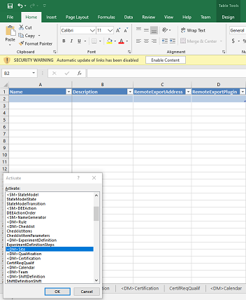 Due to limitations in the Excel format, the names of the objects in MES are sometimes longer than the allowed values for the tab names. To avoid this issue and maintain compatibility with multiple versions of Excel, this sheet serves as a shortening cheat-sheet for the tab names. The first column, with WorksheetName in the header, has the names of the tabs in the Excel files that correspond to each of the values in the second column, Value, representing the names of the system objects that are referenced. Define your tab name using the tag <LOOKUP> and append a short name for the object (e.g, <LOOKUP>MySmartTable). Then, in this tab, map it to the tab name you would define otherwise, so that MySmartTable becomes the shortened version of <ST>TheRealNameForMySmartTable.