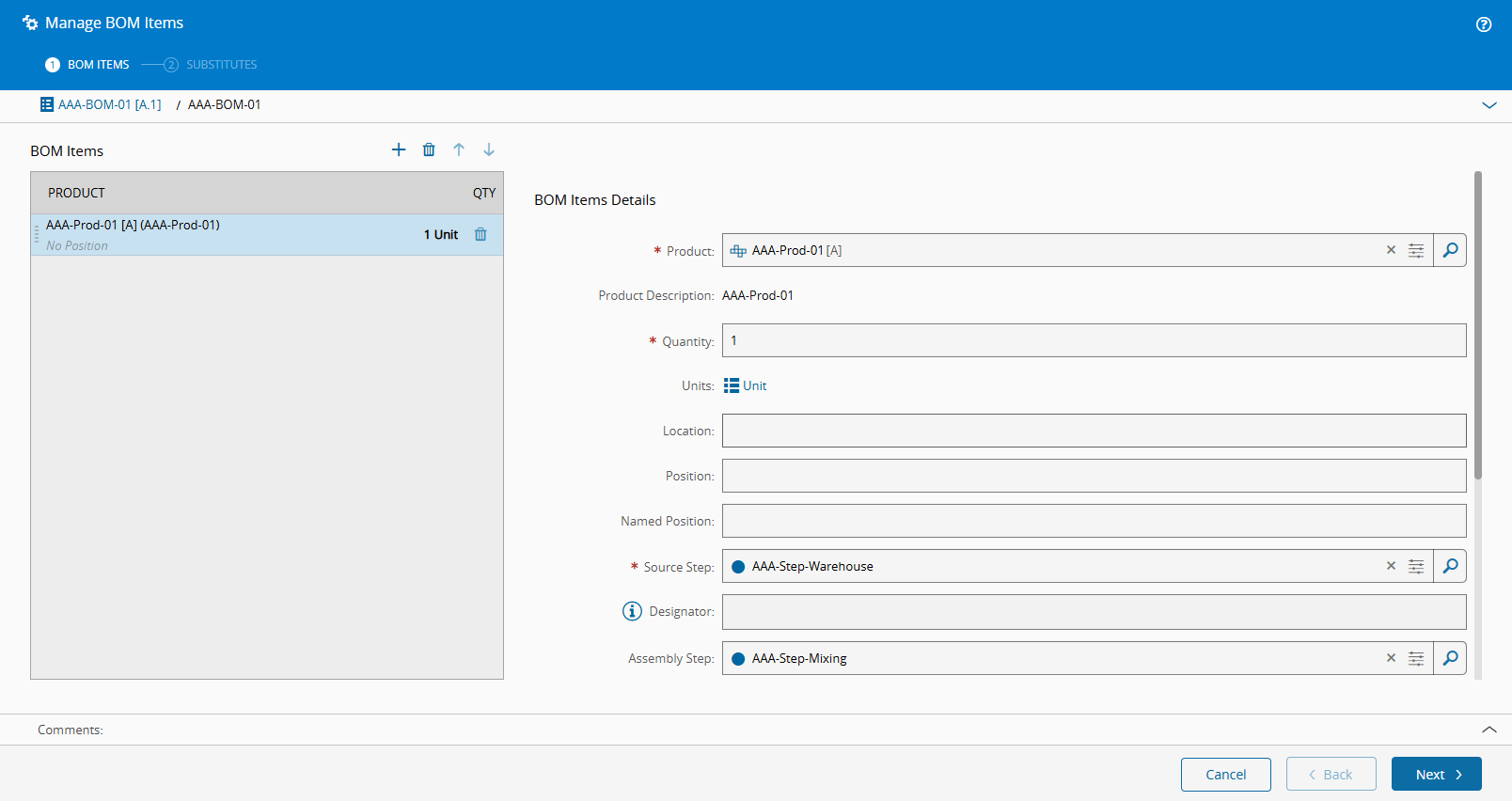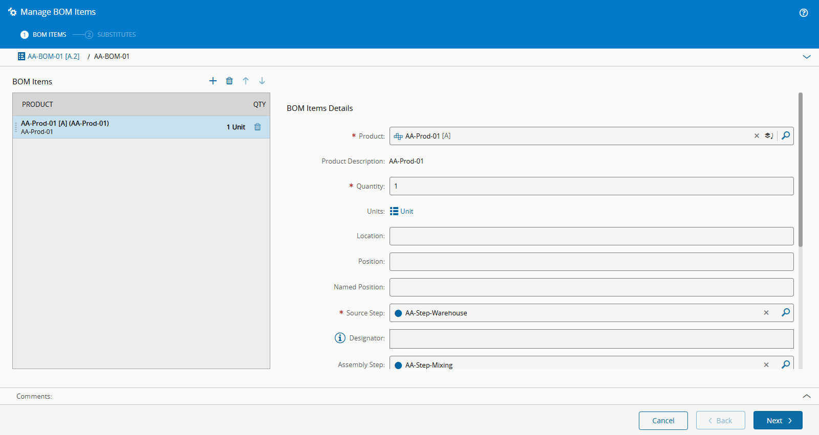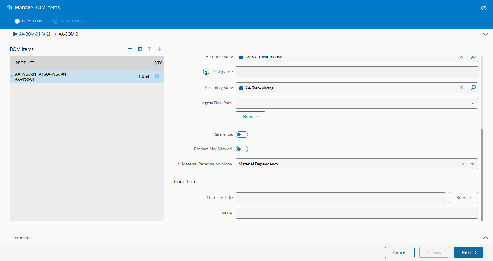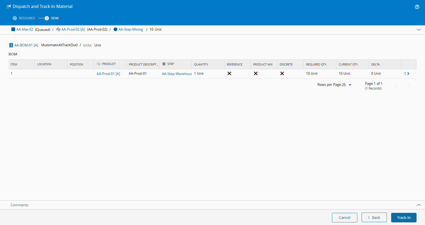 This step is only needed because in this example we set the assembly Type of the BOM as Automatic at Track Out.