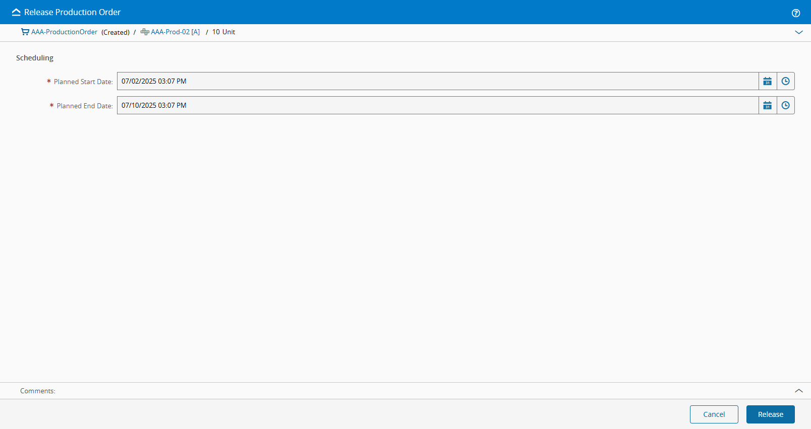 Enter the needed dates and select Release: