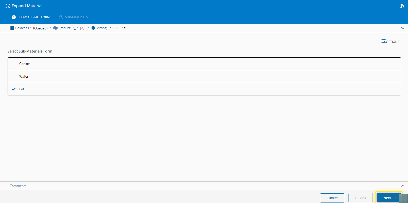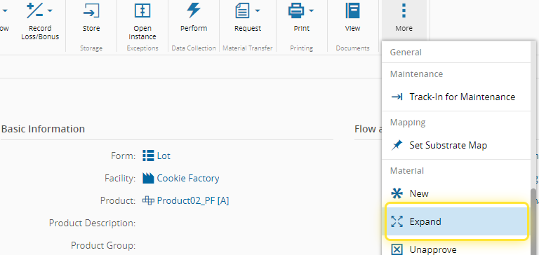 For more information, see Expand Material - Critical Manufacturing Documentation Portal ⧉