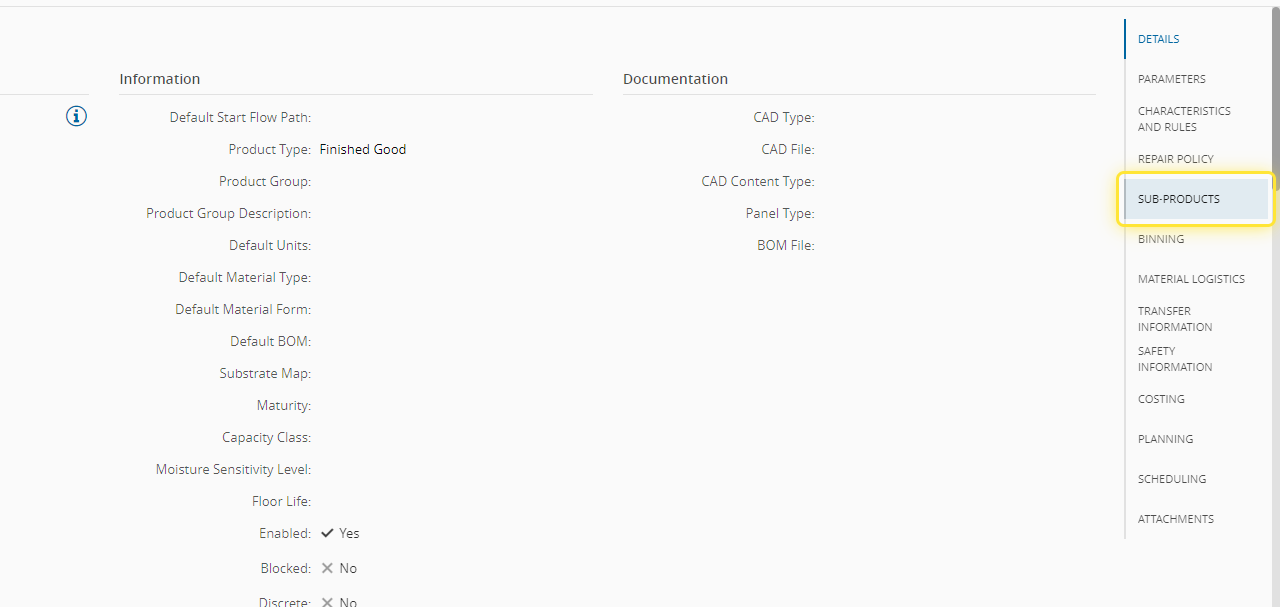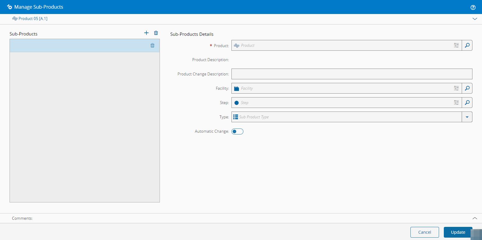 For more information, see Manage Sub-Products - Critical Manufacturing Documentation Portal ⧉