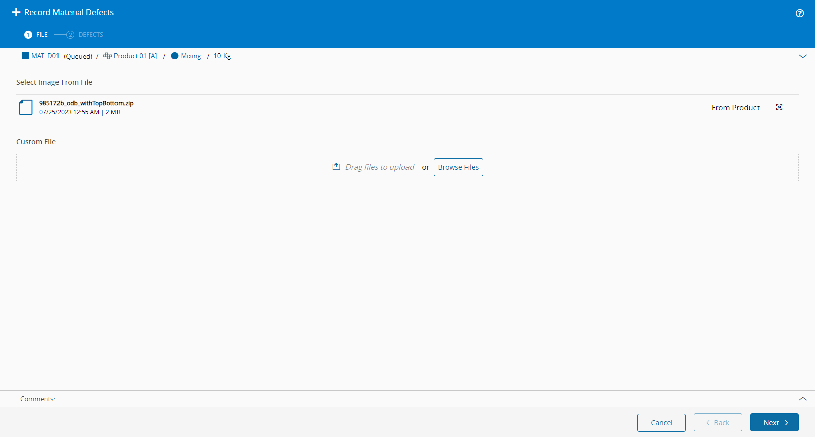 Drawings and Schematics are key for the manufacturing of a product in many assembly and electronics industries. To achieve this, the User can upload ODB ++ ECAD files in MES. Currently, the system only supports this file type, however, in the future, further file types will be supported.