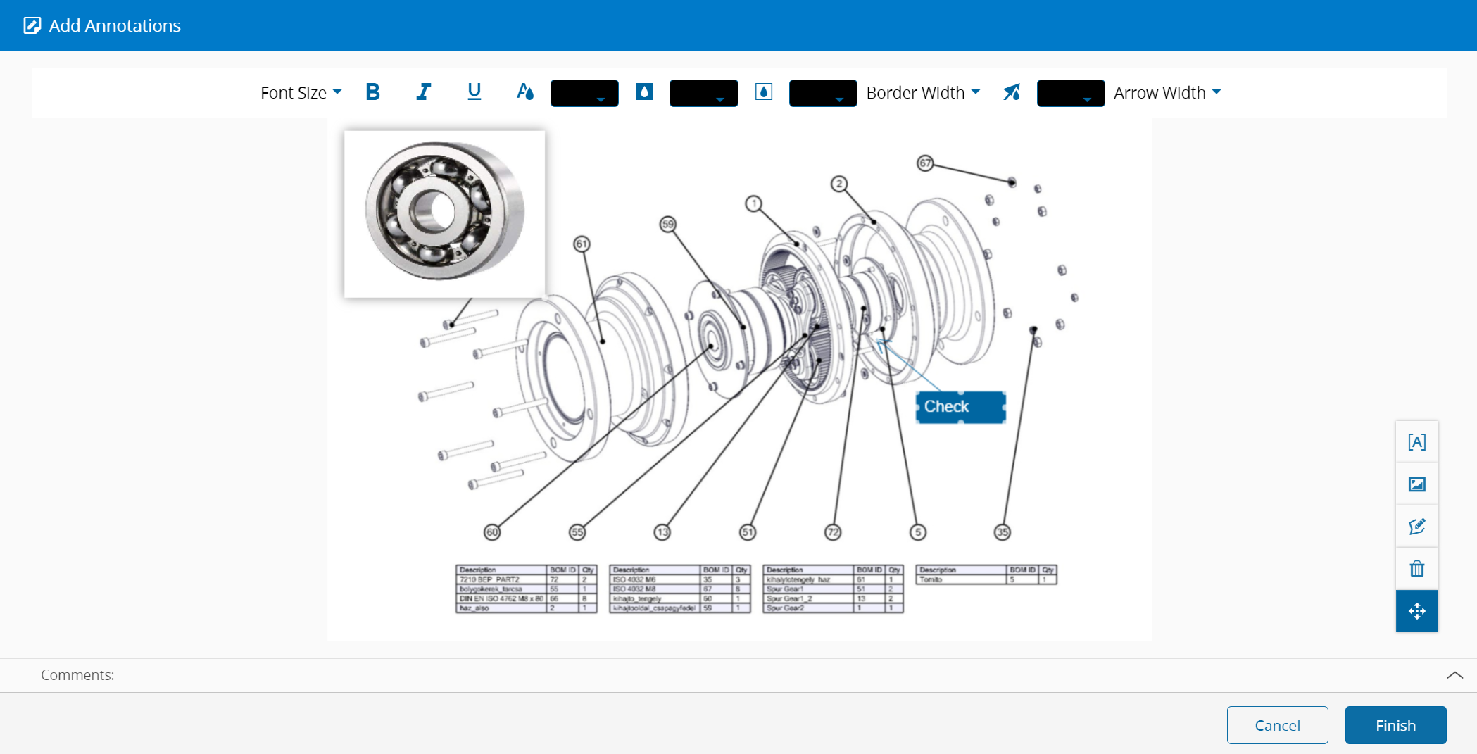 For dynamic files (e.g CAD), the User needs to take a snapshot from the CAD viewer to use as a static image and to be able to add annotations, as displayed in the Figure below.