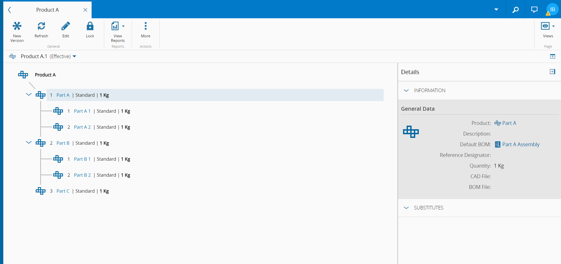 For the given example, the User should create the BOMs required for assembling Product A and for assembling the Parts of Product A.