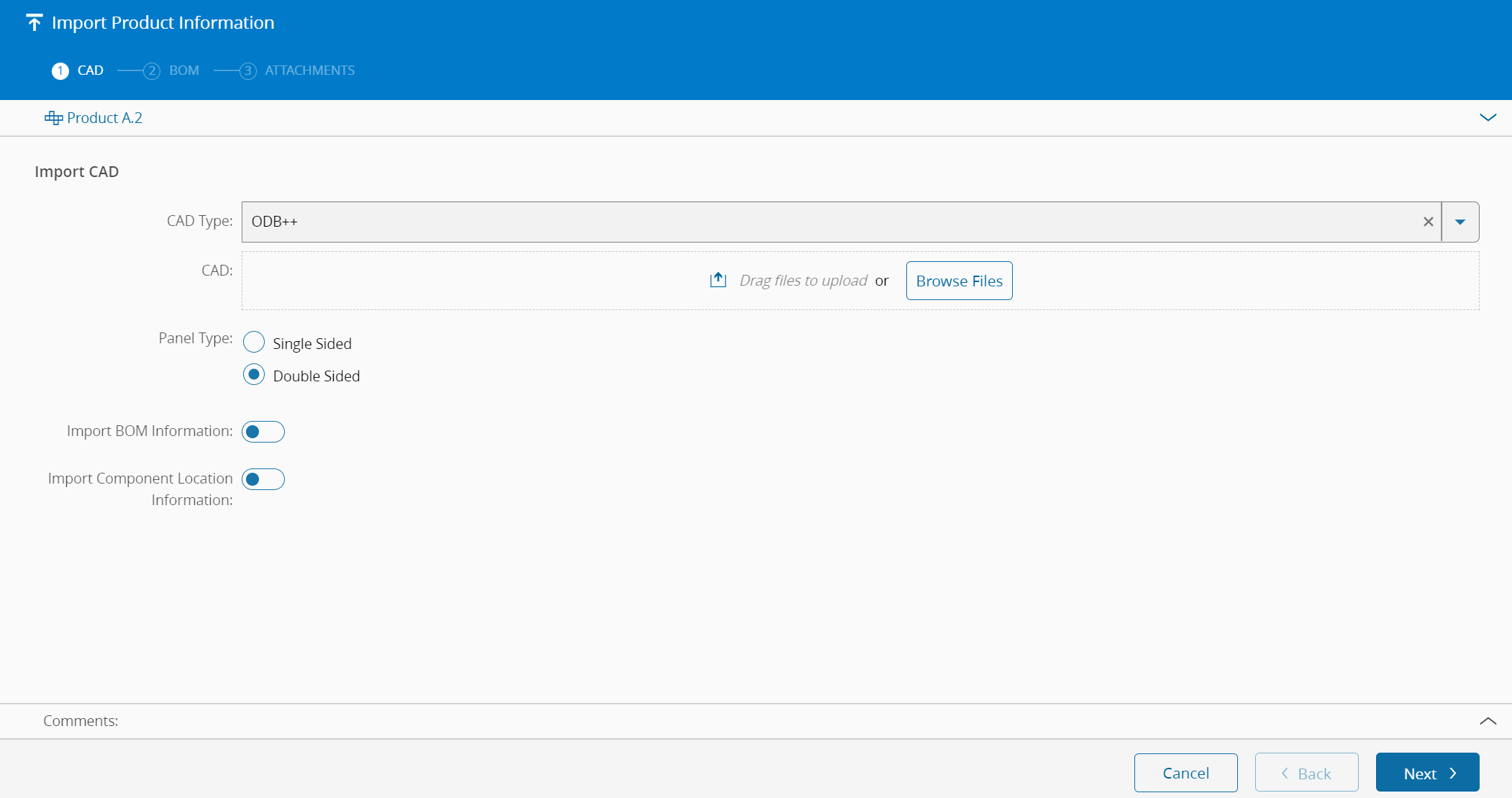 | CAD Type | The Product CAD file type. Currently, only the ODB ++ format is supported. |