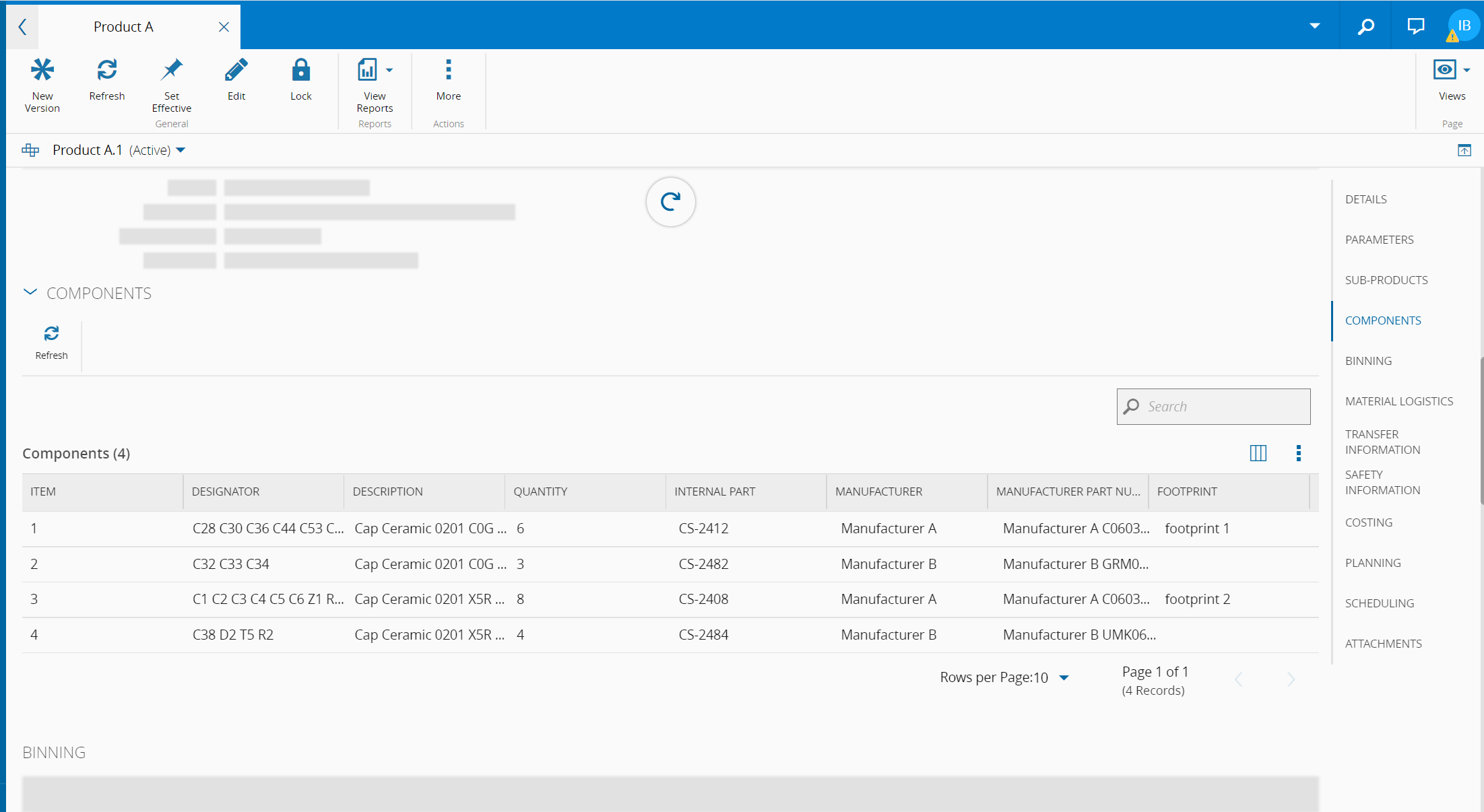 The Product Components are listed under the Components section available in the Product Details view, as displayed in the Figure below.