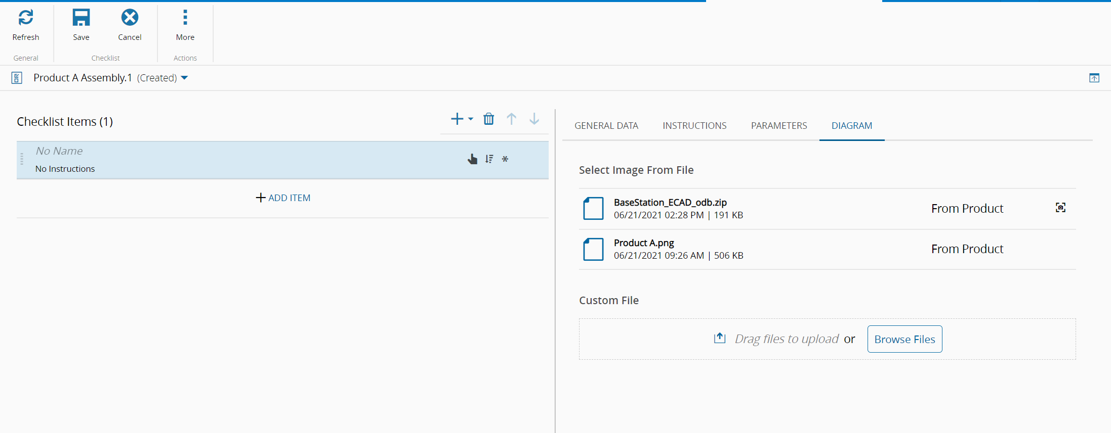It is possible to define a Diagram for a Checklist Item, i.e. a file that provides instruction with some sort of visual aid for the User when performing the Checklist.