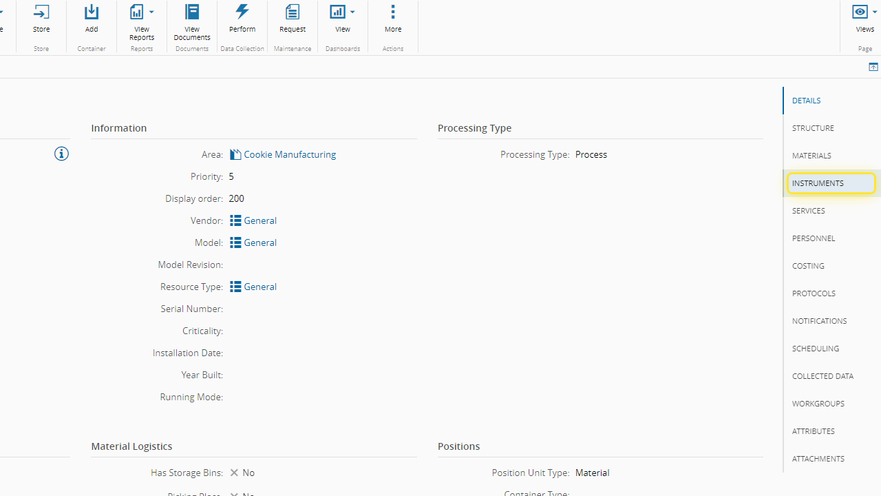 For more information, see Manage Resource Instruments - Critical Manufacturing Documentation Portal ⧉