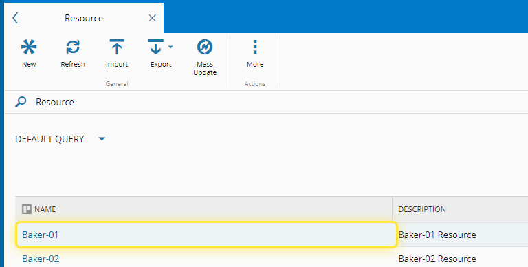 2. Select the Resource entity.#