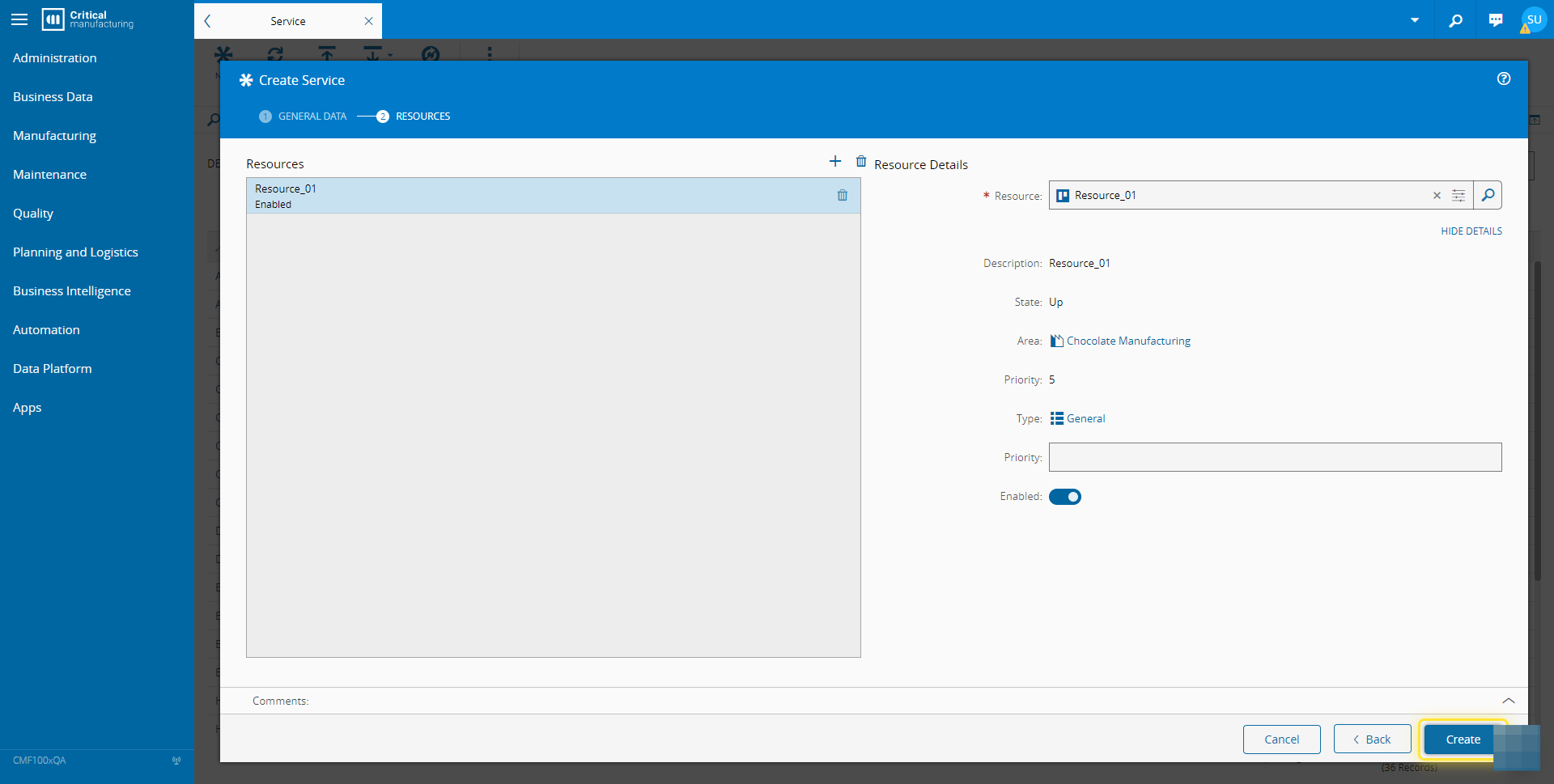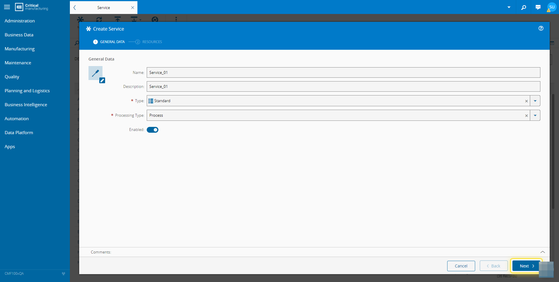 For more information, see Create Service - Critical Manufacturing Documentation Portal ⧉