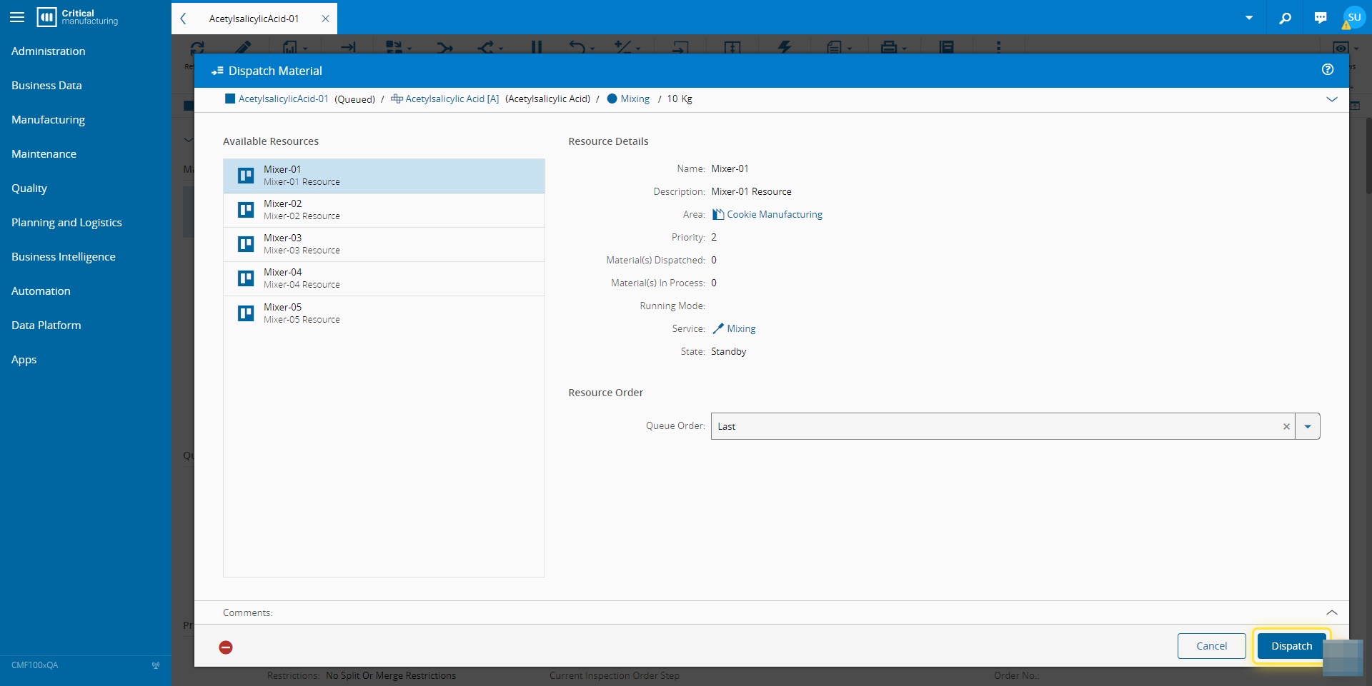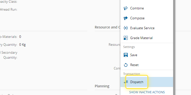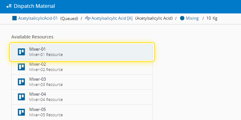 6. Select the Resource to dispatch the Material to.#