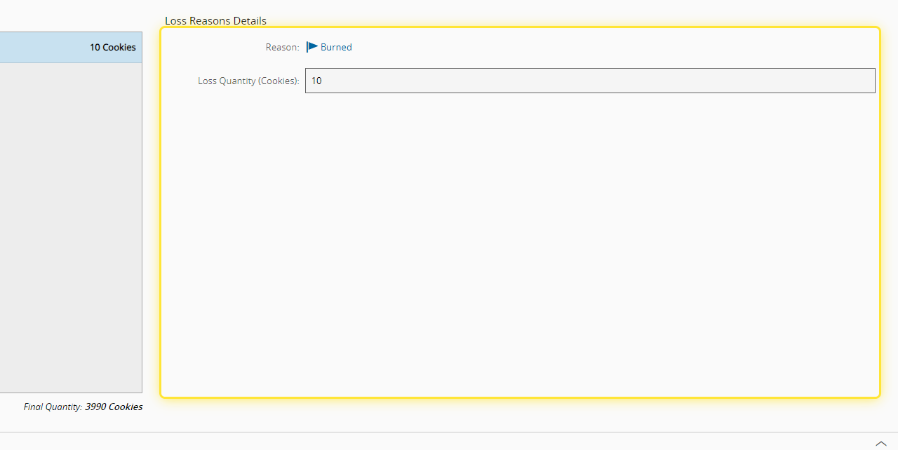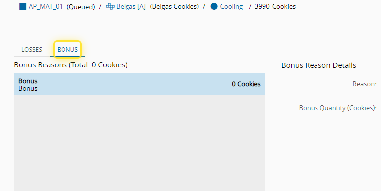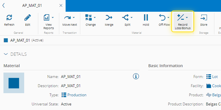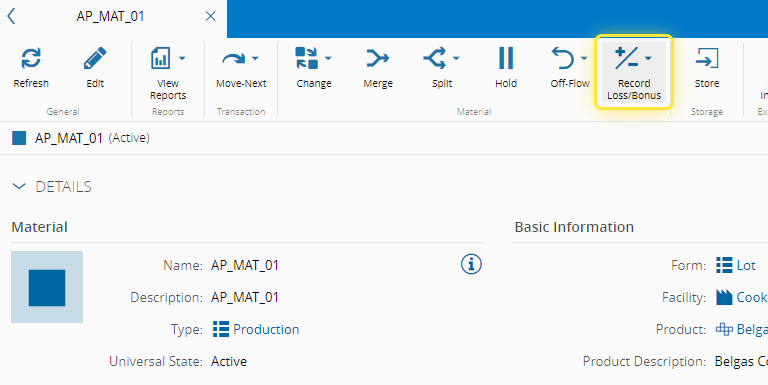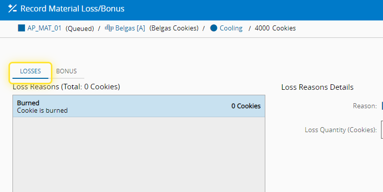 For more information, see Record Material Loss/Bonus - Critical Manufacturing Documentation Portal ⧉