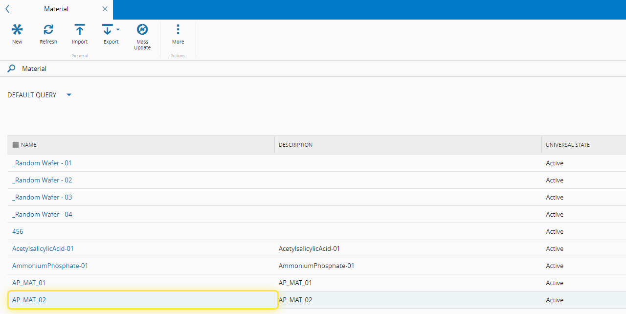 2. Select the Material entity.#