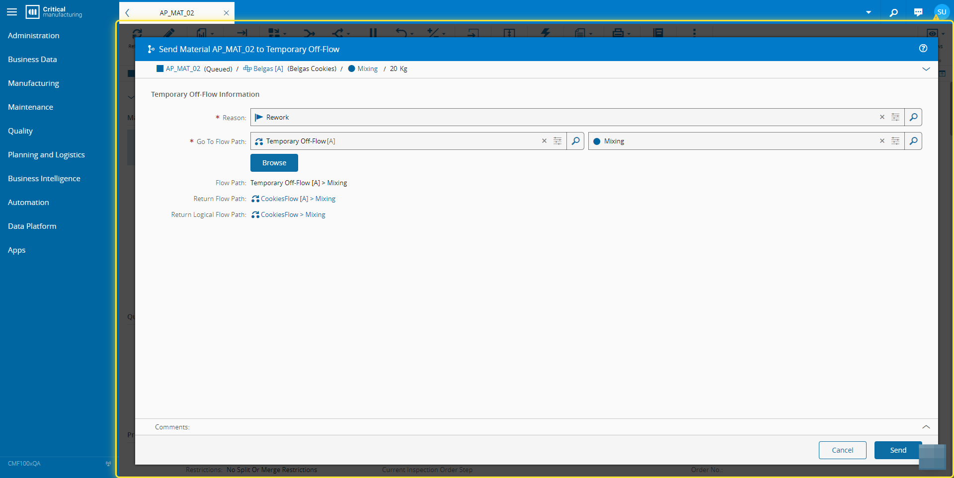 For more information, see Temporary Off-Flow - Critical Manufacturing Documentation Portal ⧉