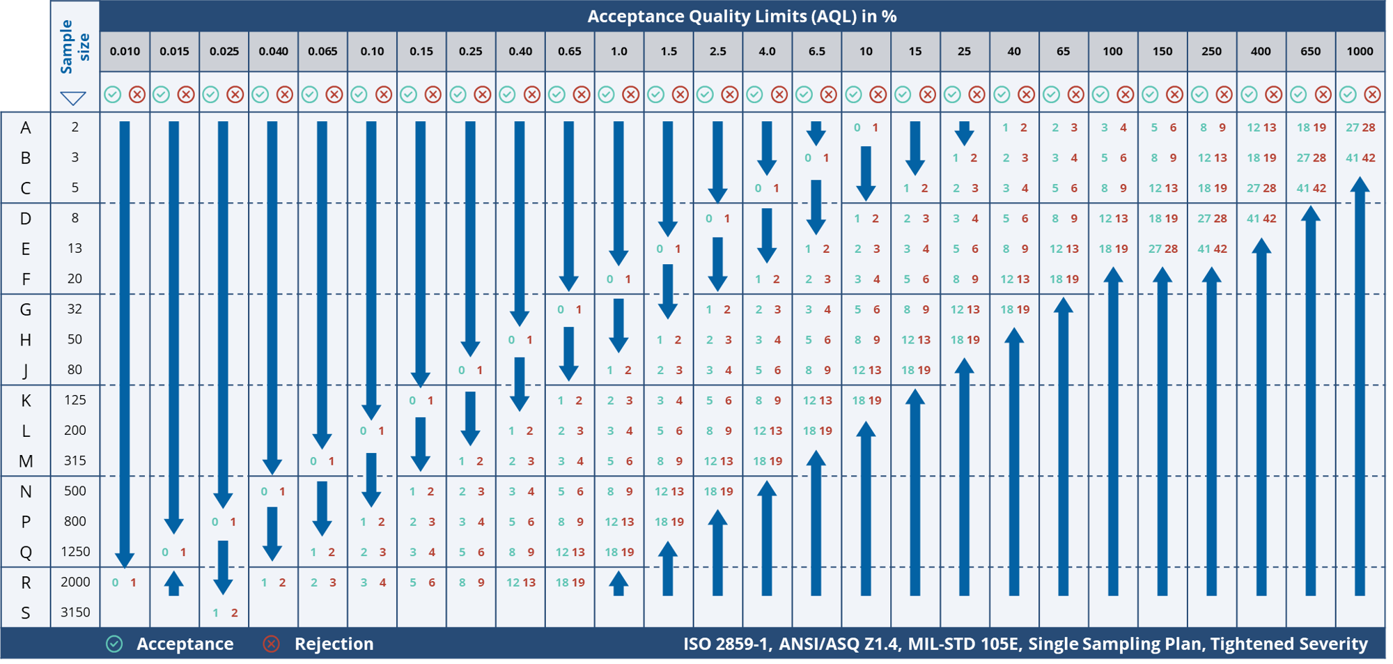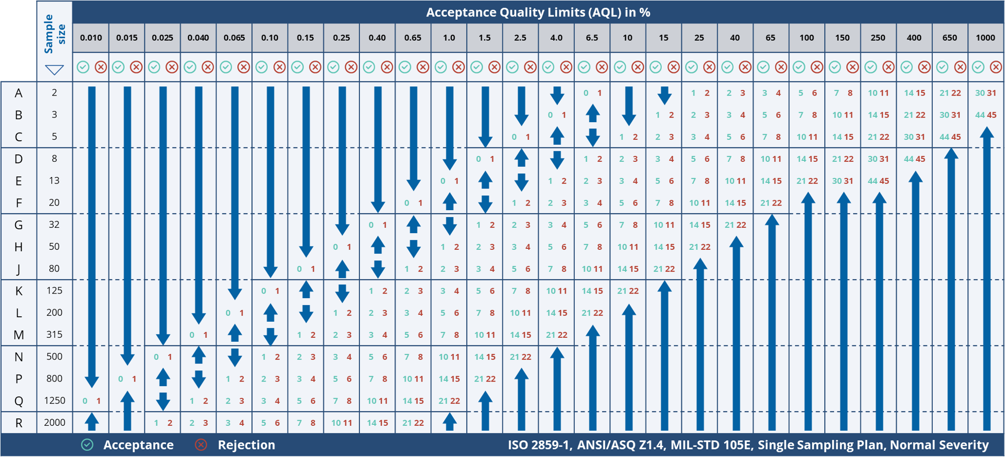 Furthermore, depending on the Inspection Frequency and, as mentioned in the previous paragraph, depending on the Inspection Frequency Configuration Mode, the Sample Sizes will be calculated as described in the Table below.