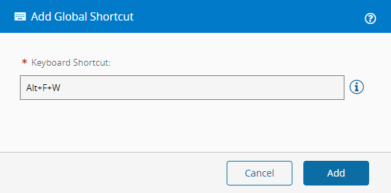 You can add Global Shortcuts by using the Manage button on the top ribbon or by right-clicking on the tab of the page and selecting Add Global Shortcut (where the information will be displayed in the Action Details column) followed by adding the desired keyboard shortcut combination: