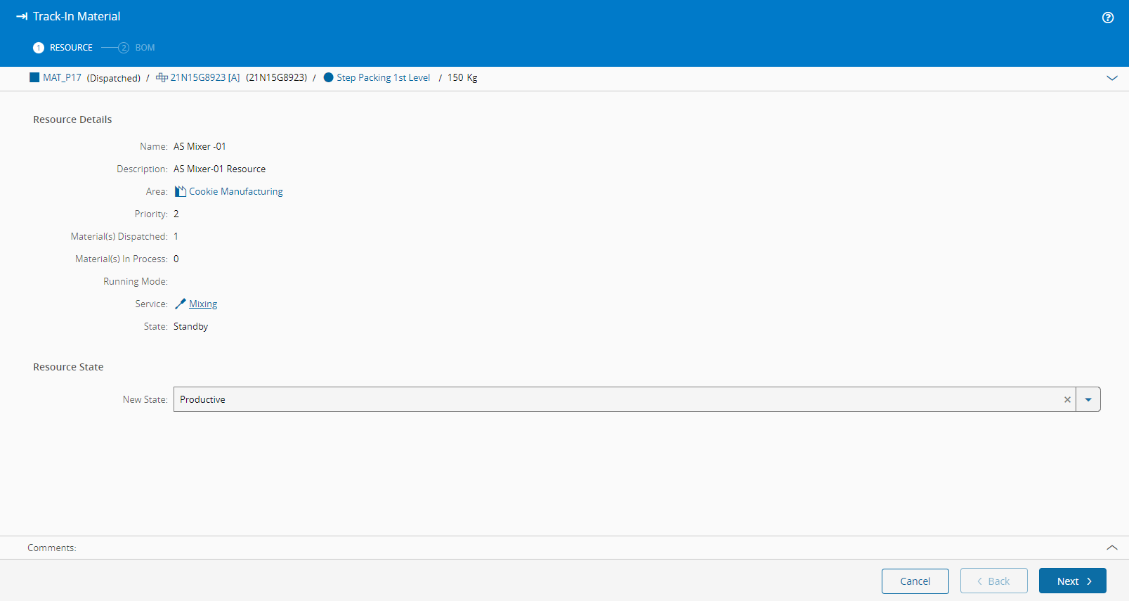 After entering the requested details, the usual Track-In Material wizard will be displayed: