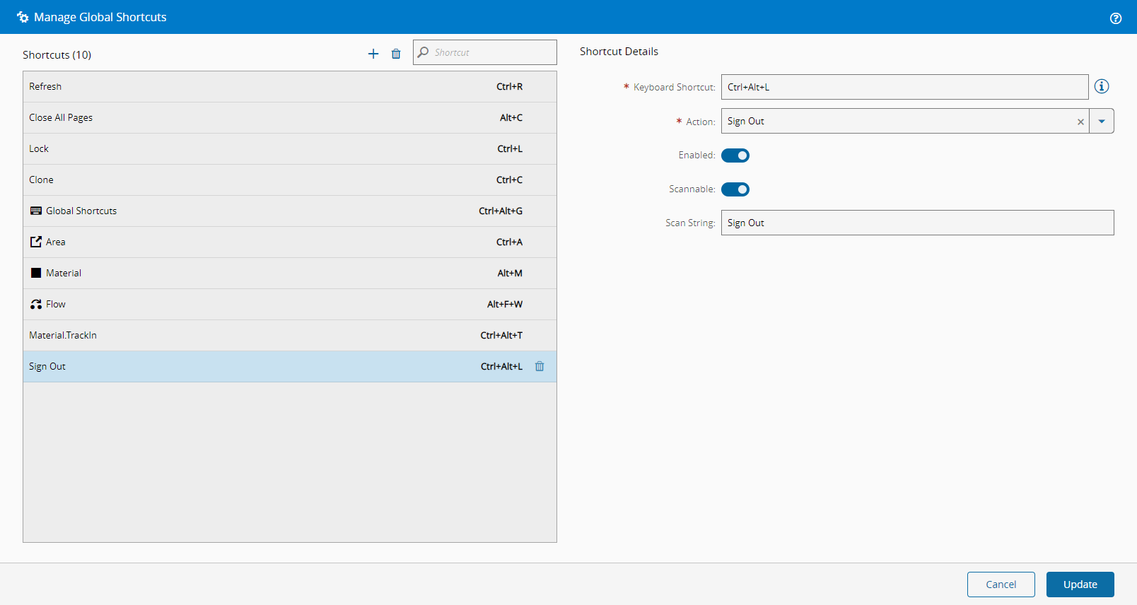 Ctrl+Alt+Lto execute the Action Sign Out. - Enable the Scannable option.