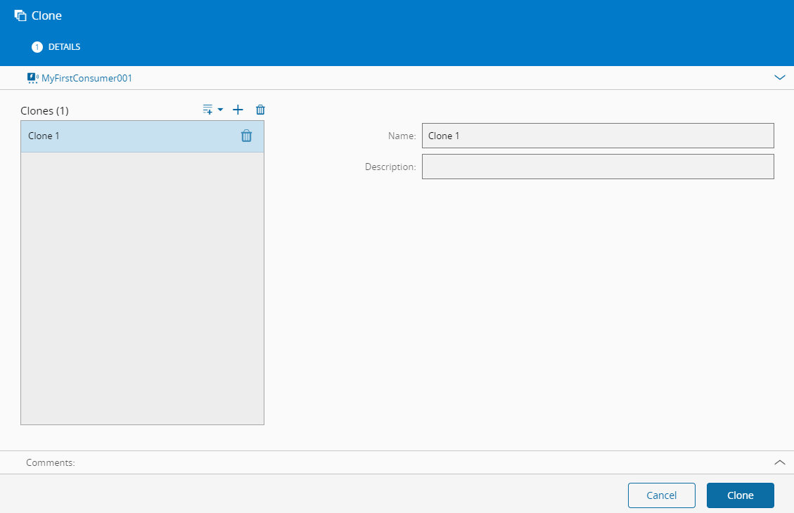 This operation is used to clone an existing IoT Consumer into a new IoT Consumer with a different name and identical characteristics.