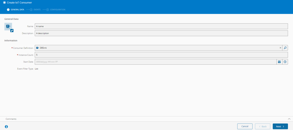 - Select the number of Instances of the IoT Consumer, the maximum number of worker instances that can be allocated by the system for high-availability and scalability purposes.