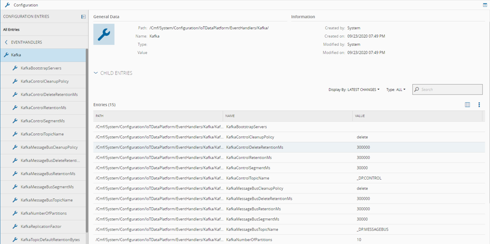 All values set in the MES Configuration section beneath the /Cmf/System/Configuration/IoTDataPlatform/ branch are recursively fetched and added into a Key/Value dictionary. With this mechanism, users can define customized keywords in the config and use them as Keywords in the IoT Consumer definition.
